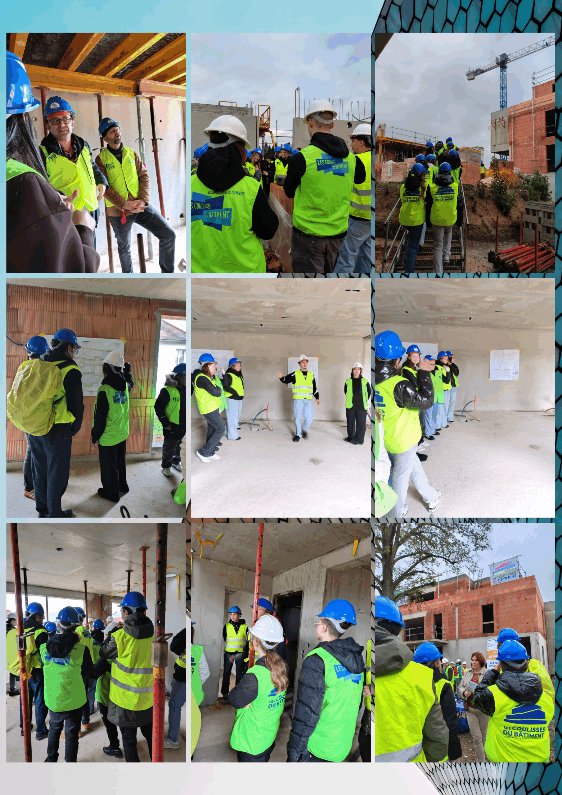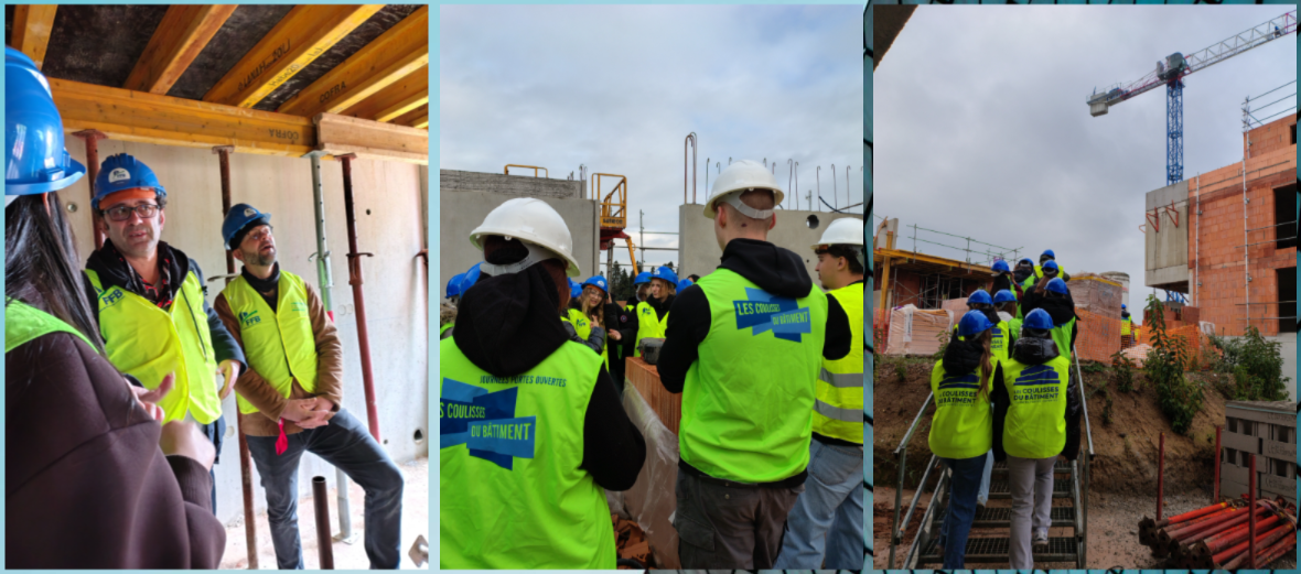 Dans le cadre des coulisses du bâtiment organisées par la Fédération Française du Bâtiment Bas-Rhin, les élèves de la classe de 3PM (Prépa-Métiers), accompagné-es par leurs professeur-es – Mme Claudic, M. Herrmann et M. Lefebvre – ont visité le chantier « Les Jardins d’Olympe » à Lingolsheim.
