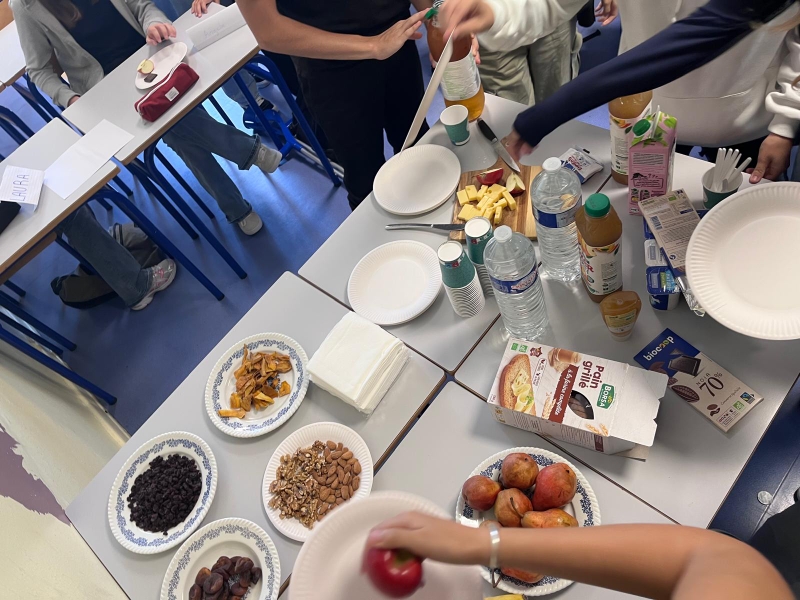 Le mercredi 10 septembre, les élèves de la classe de 3ᵉ Prépa-Métiers ont eu le plaisir de partager un petit-déjeuner équilibré avec leur professeure de SVT, Mme Rahim.